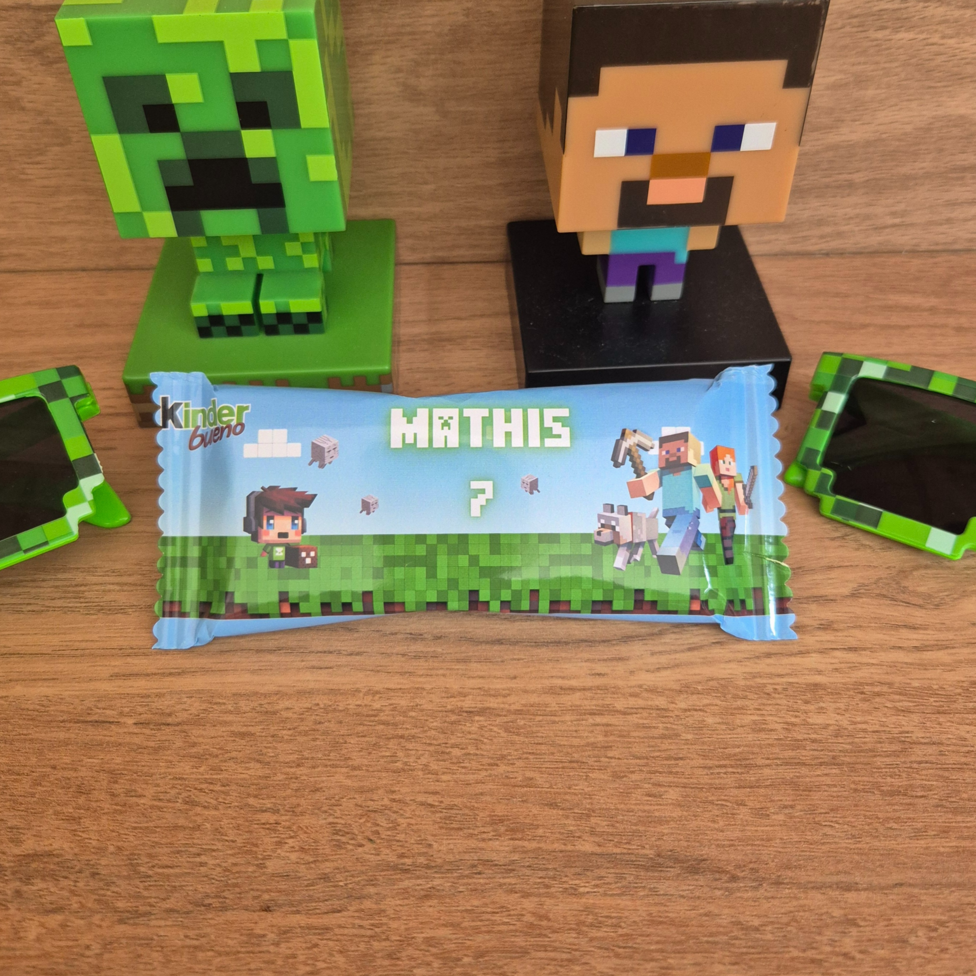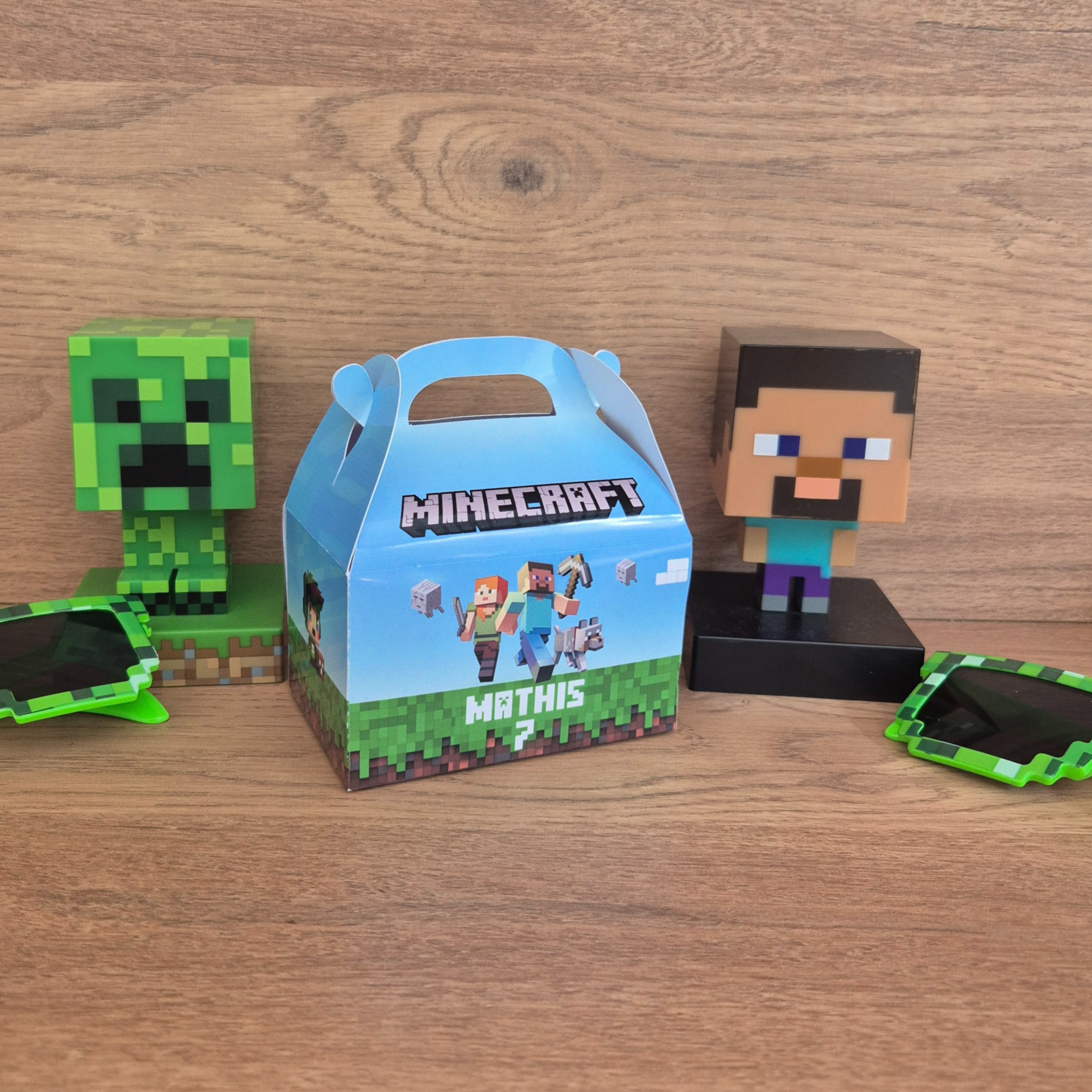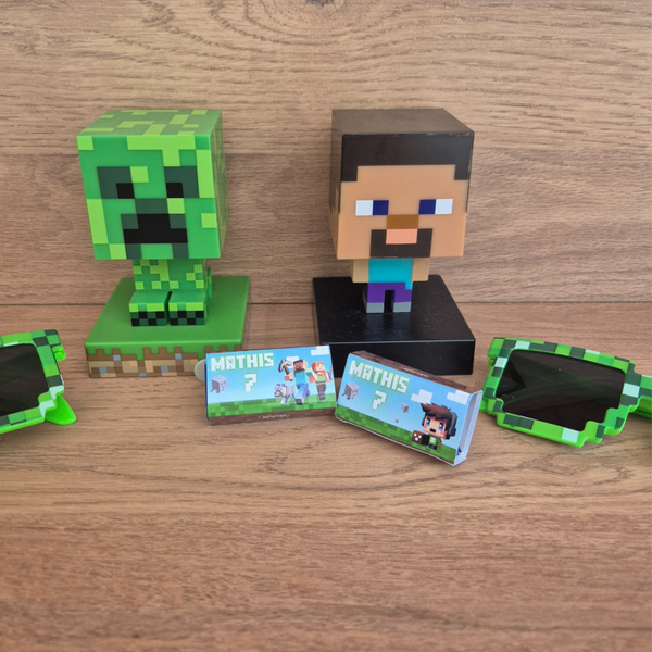 Décorez votre fête avec notre collection inspirée de l’univers Minecraft : boîtes surprises, sachets à bonbons, étiquettes, boîtes à pop-corn et bien plus encore. 👉 Chaque article est vendu à l’unité pour composer la décoration qui vous ressemble. Personnalisation possible (prénom, âge).