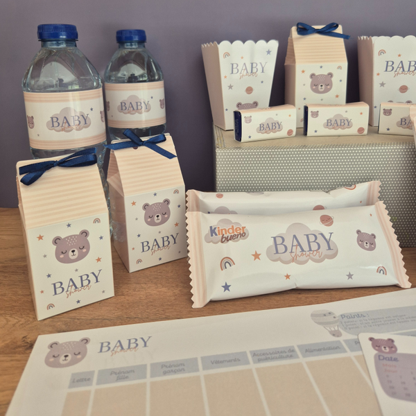 Apportez une touche douce et raffinée à votre Baby Shower, baptême ou anniversaire avec notre collection Ourson. Chaque article est soigneusement conçu pour créer une décoration harmonieuse et chaleureuse autour de votre table.